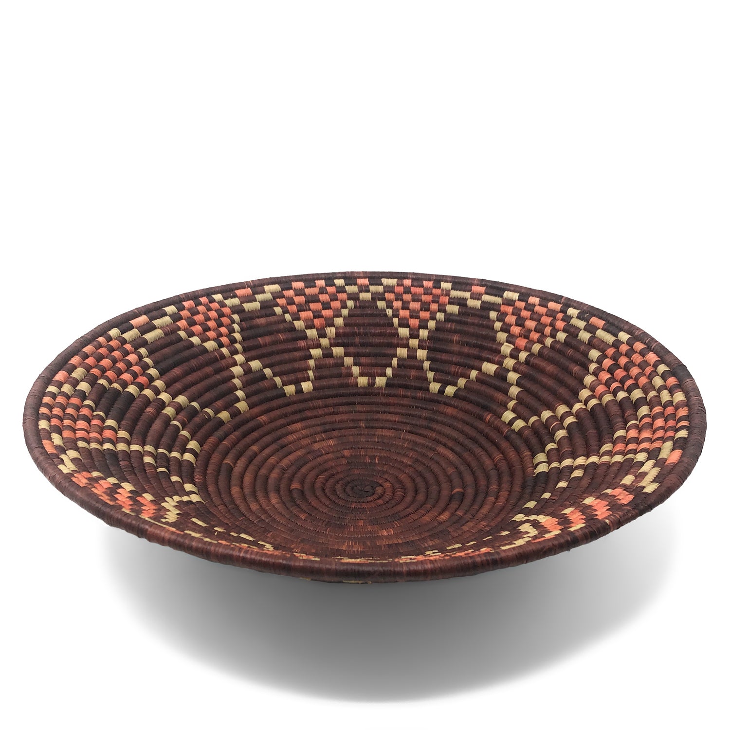 - Large round basket with a starburst pattern, expertly handwoven in Burundi, East Africa