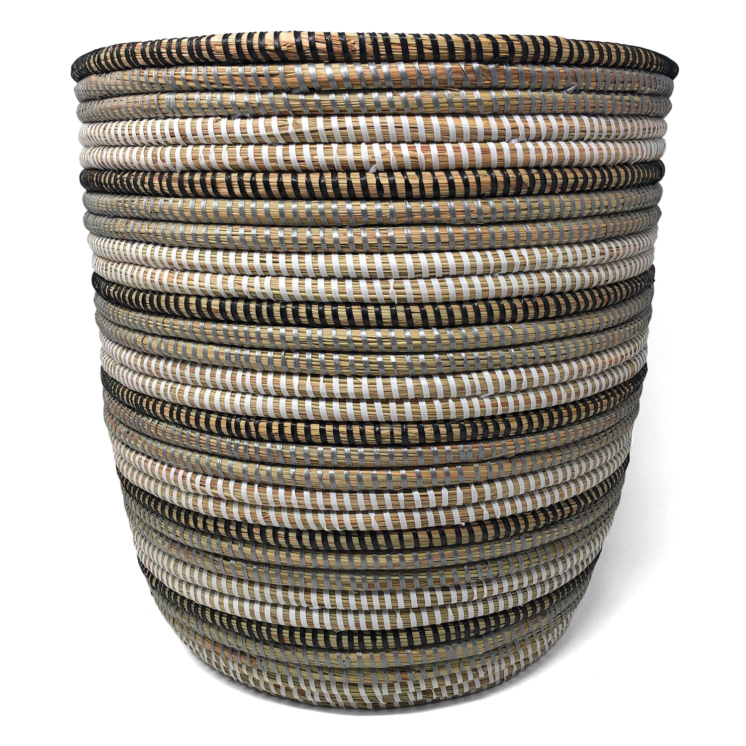 African Fair Trade 13-inch Handwoven Open Hamper Basket, Black/Silver/White