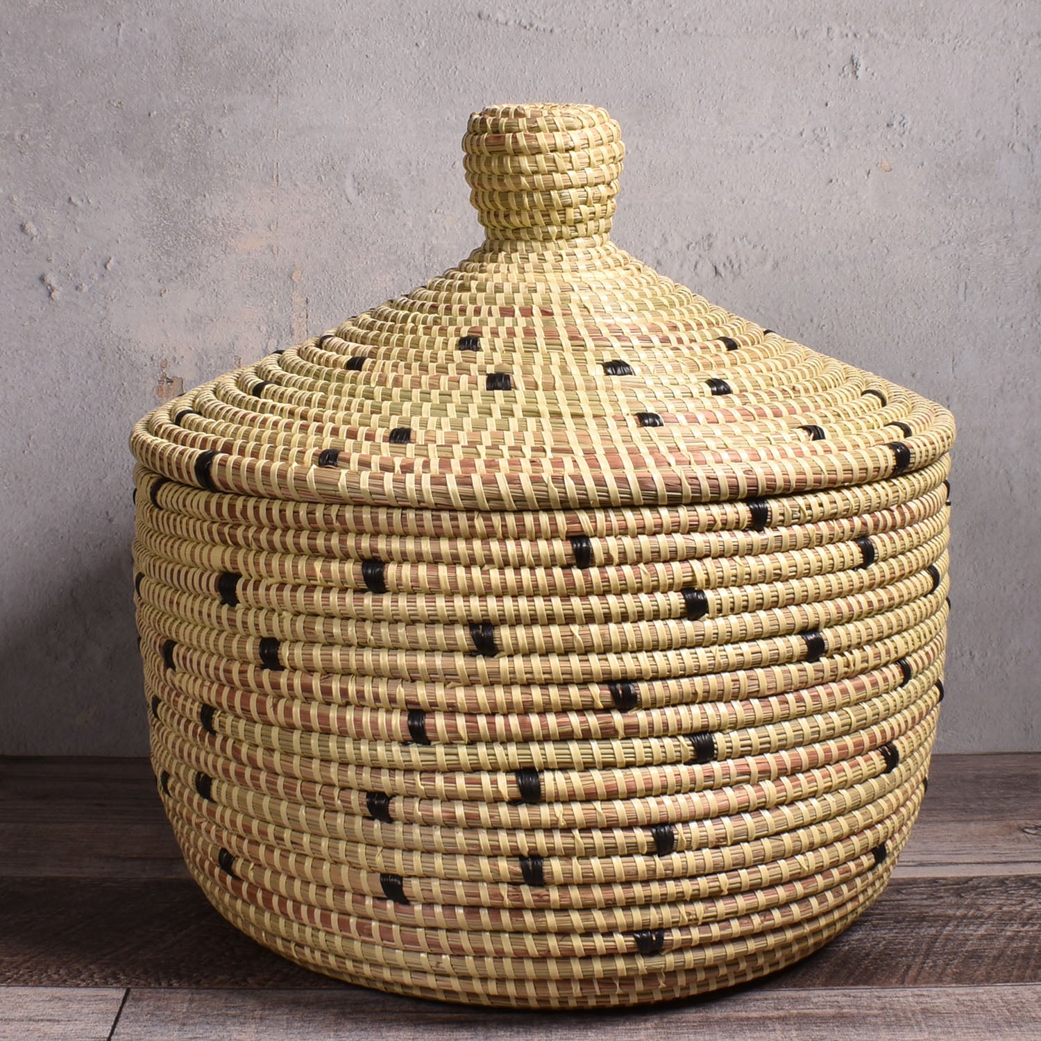 - Lidded round warming basket, handwoven by Fair Trade artisans in Senegal