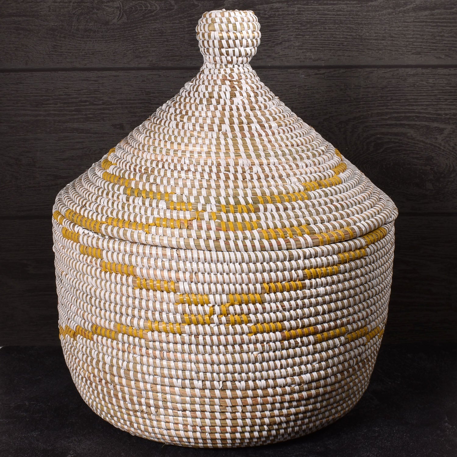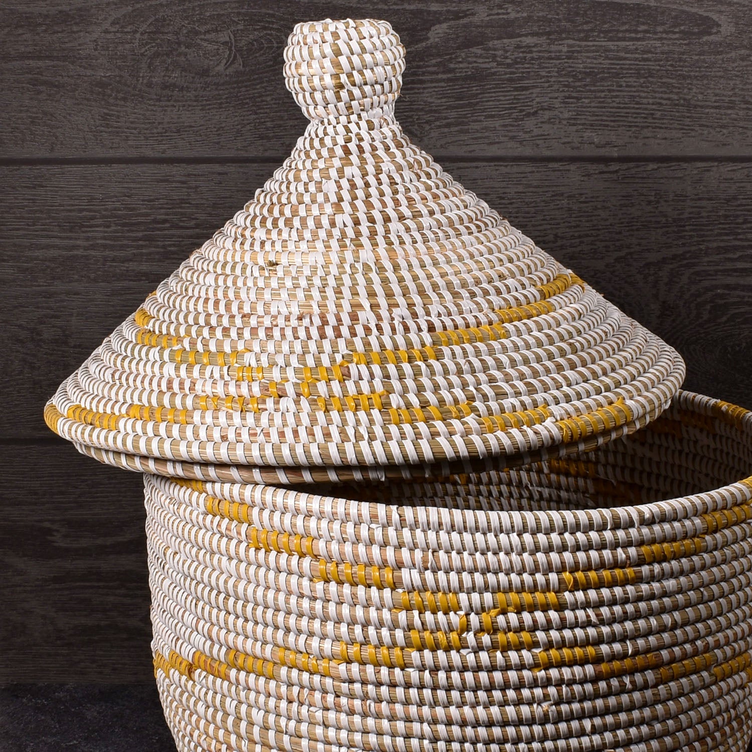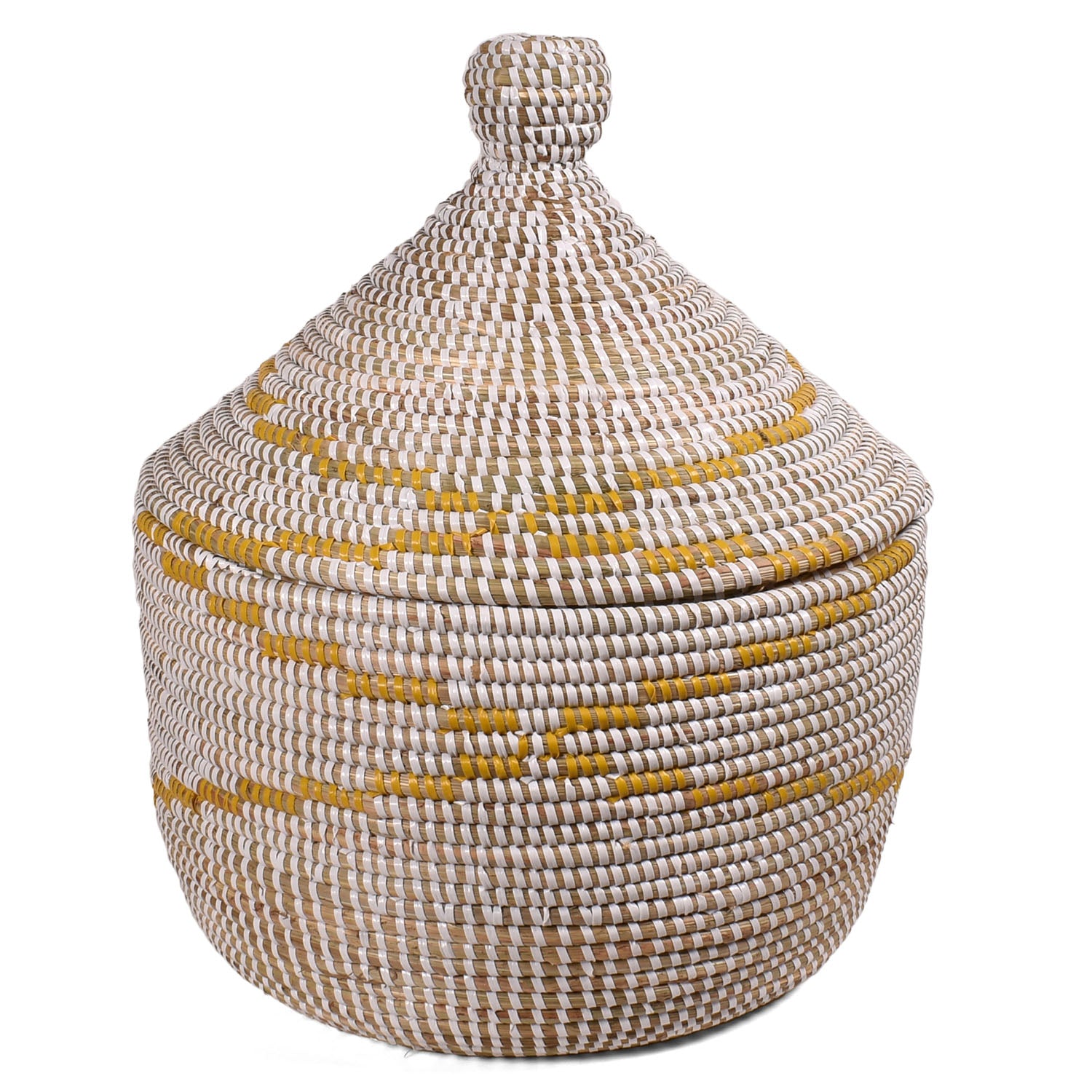 - Lidded round warming basket, handwoven by Fair Trade artisans in Senegal
