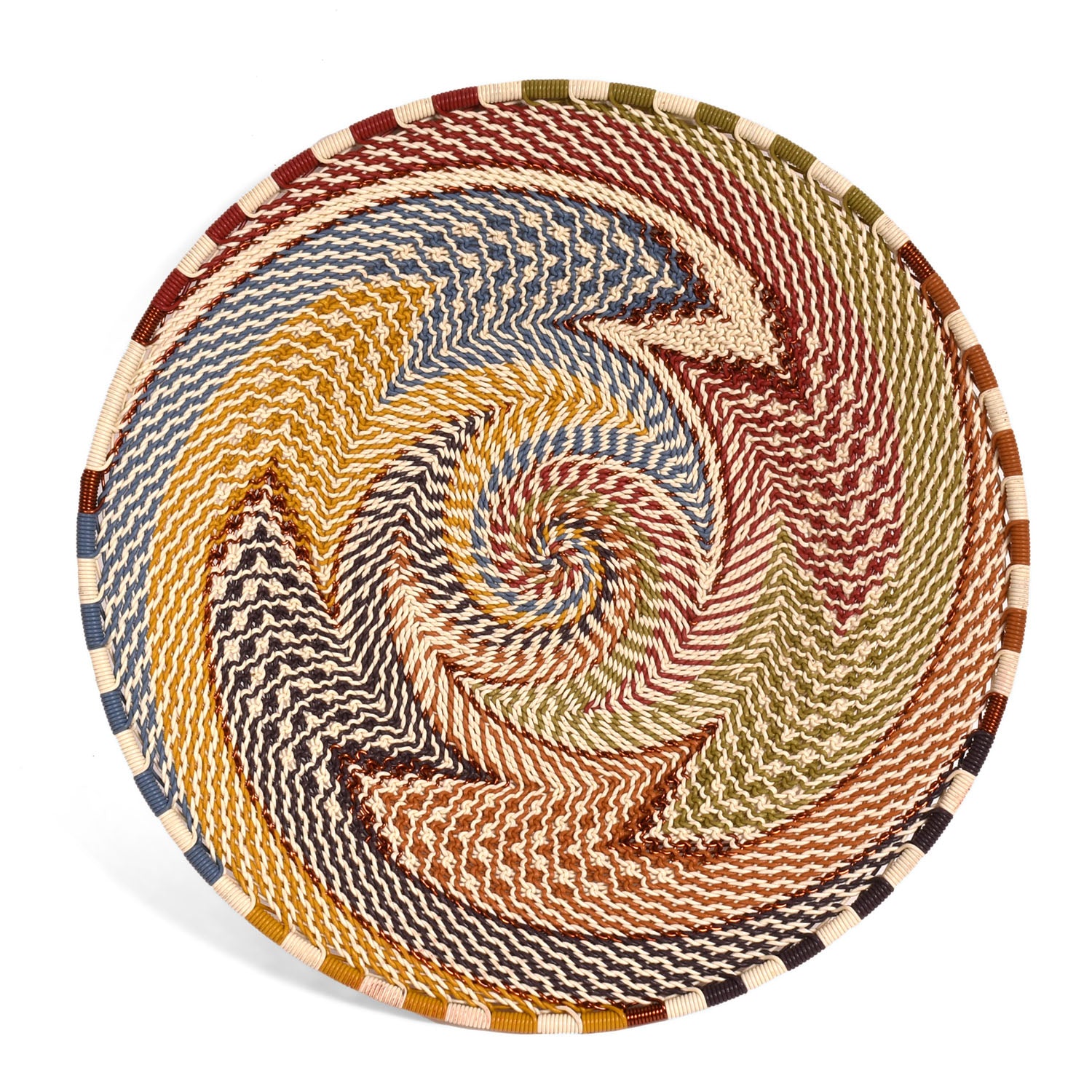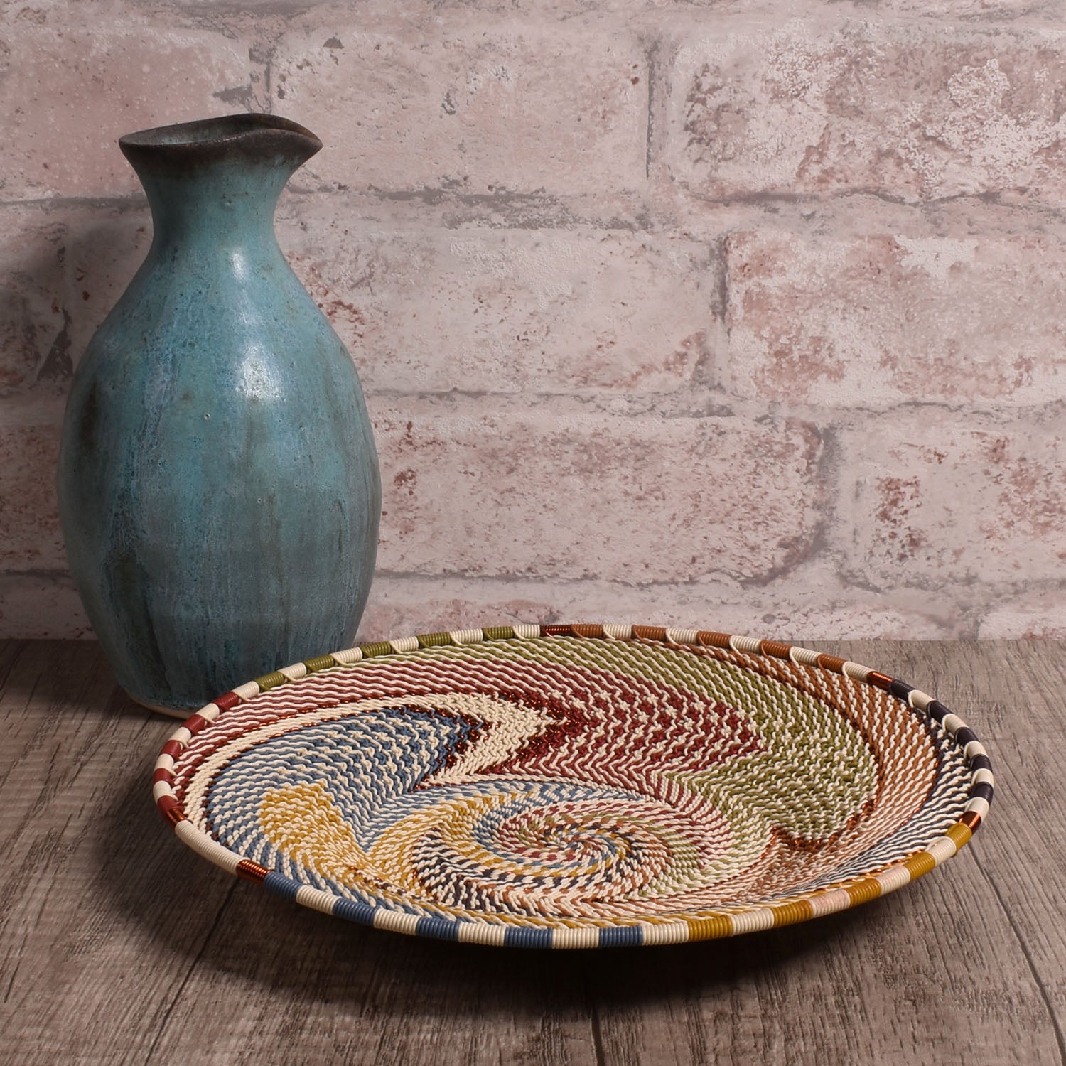African Fair Trade Zulu Telephone Wire 8-inch Platter Basket, White Desert, Intricate Swirl Pattern (Each One Unique)