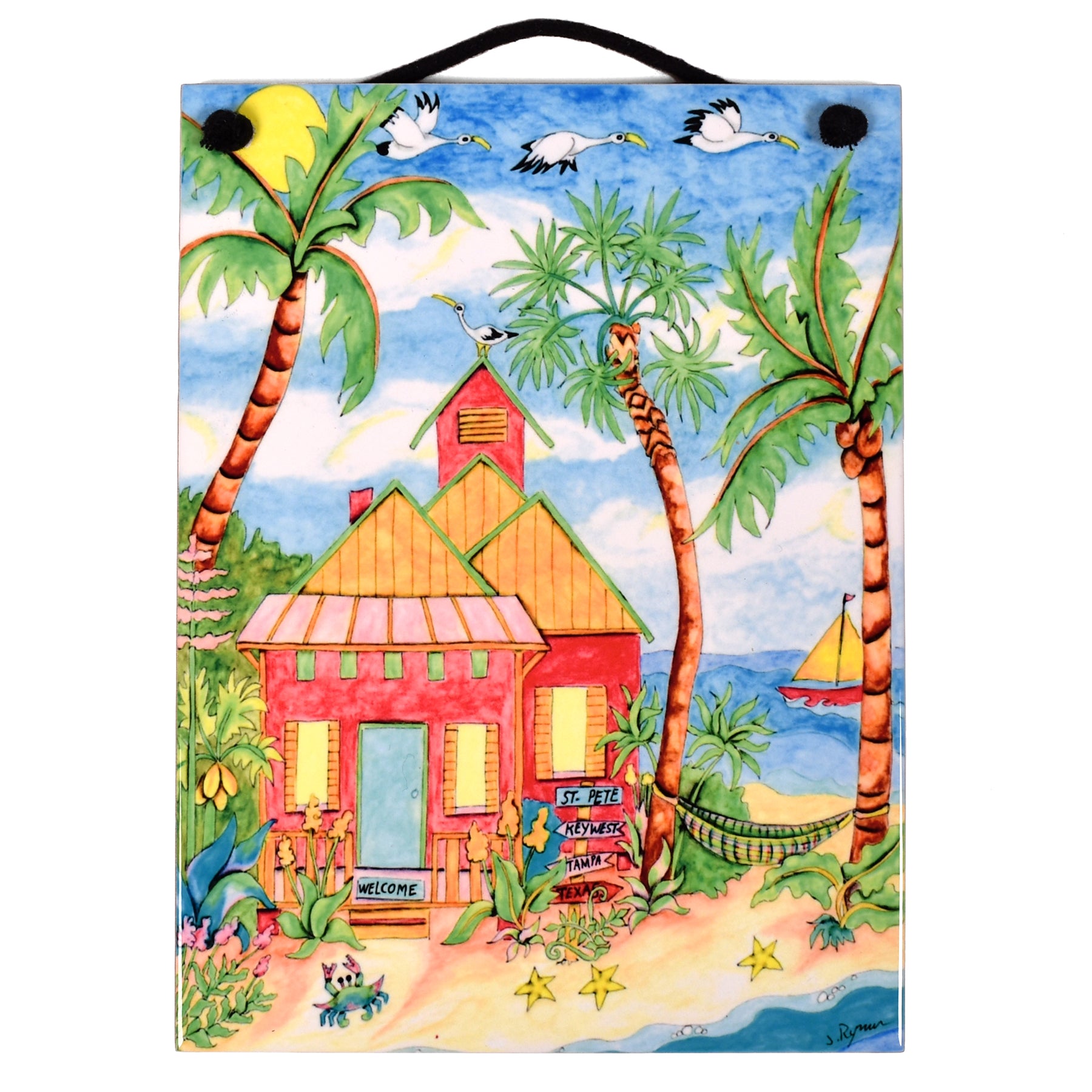 Mungo Key Designs Beach Cottage Welcome 7-3/4 x 6-inch Ceramic Tile Plaque, Handmade in The USA