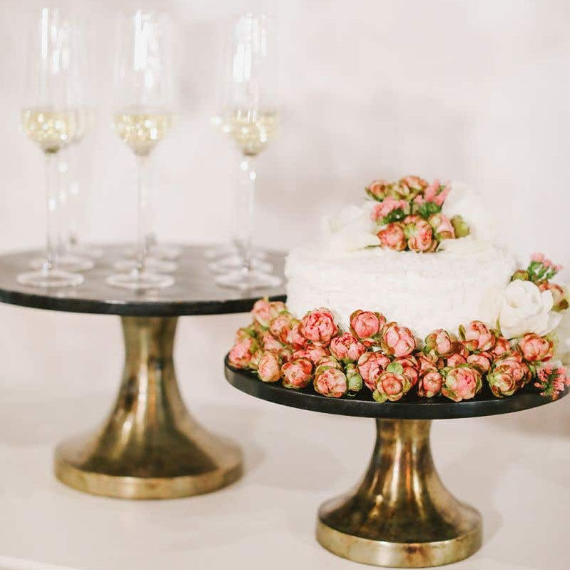 Add timeless elegance to your gatherings with this spectacular marble cake stand. Black marble and antique gold-finished metal combine to add just the right amount of glam to both traditional and contemporary settings. Please expect variations and minor imperfections due to the use of natural marble and hand finishing.