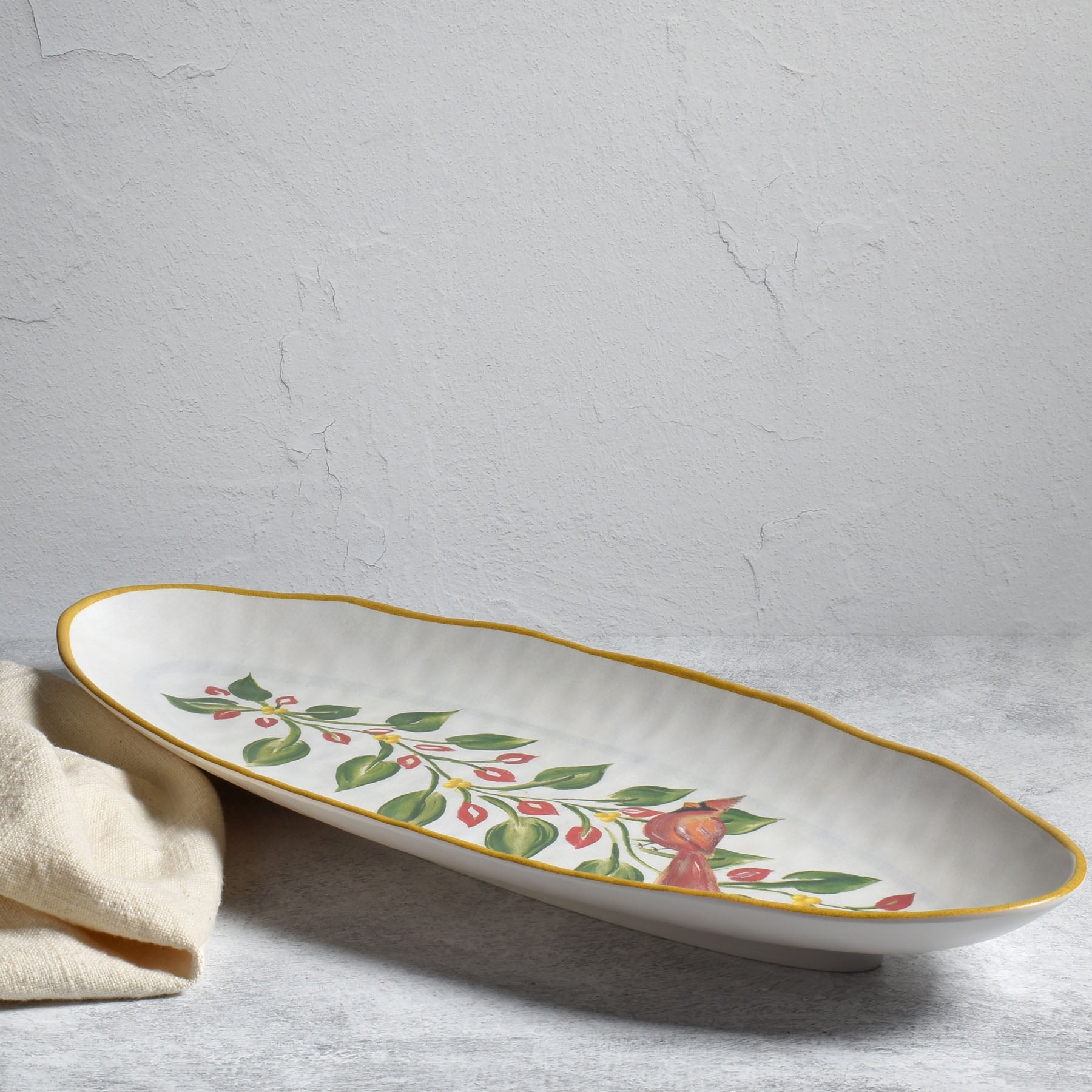 Cardinal Wreath by Carole Shiber 19" x 7.5" Oval Melamine Tray