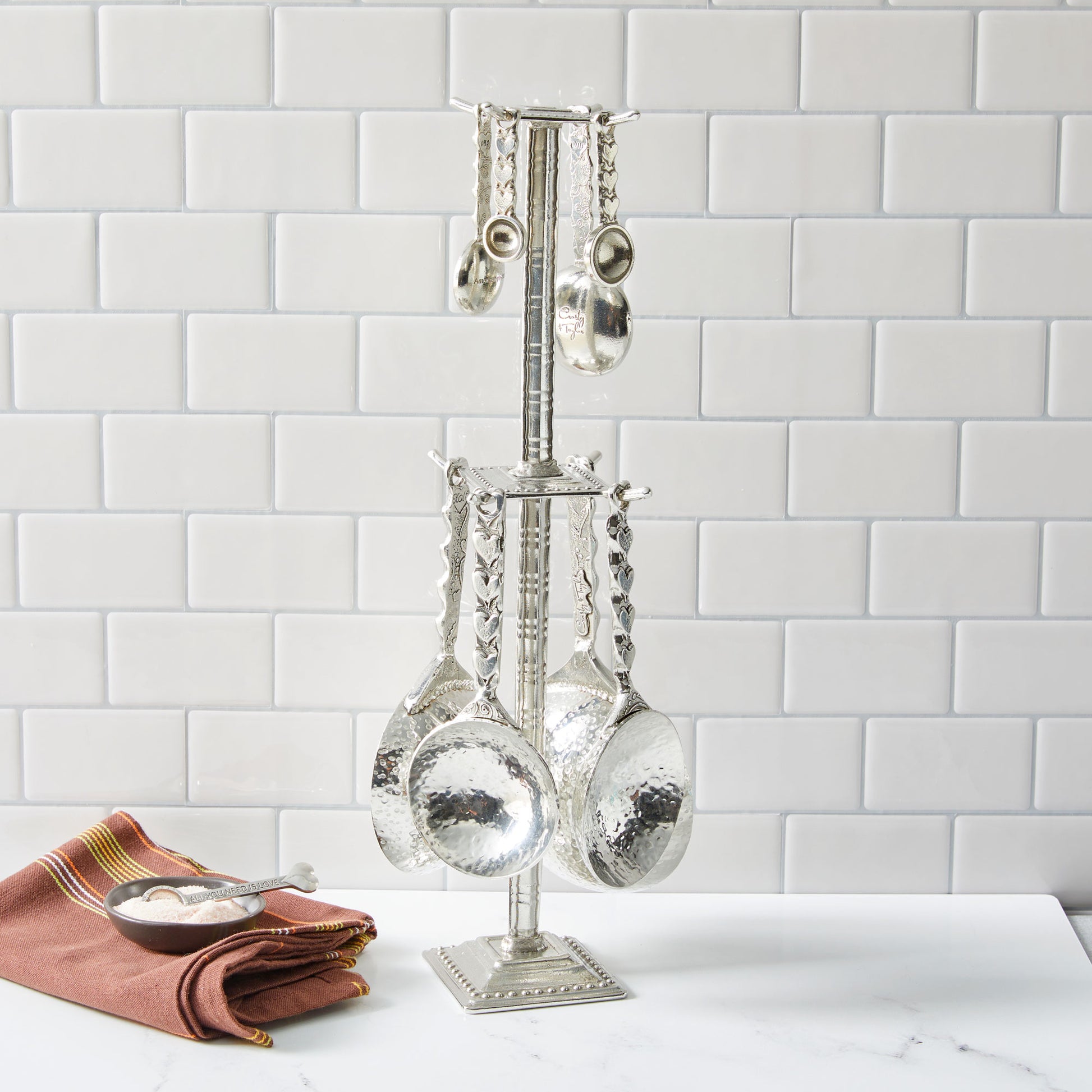 Crosby & Taylor Heart Artisan Pewter Measuring Cups and Spoons with Display Post, 9-piece Set, Handmade in the USA