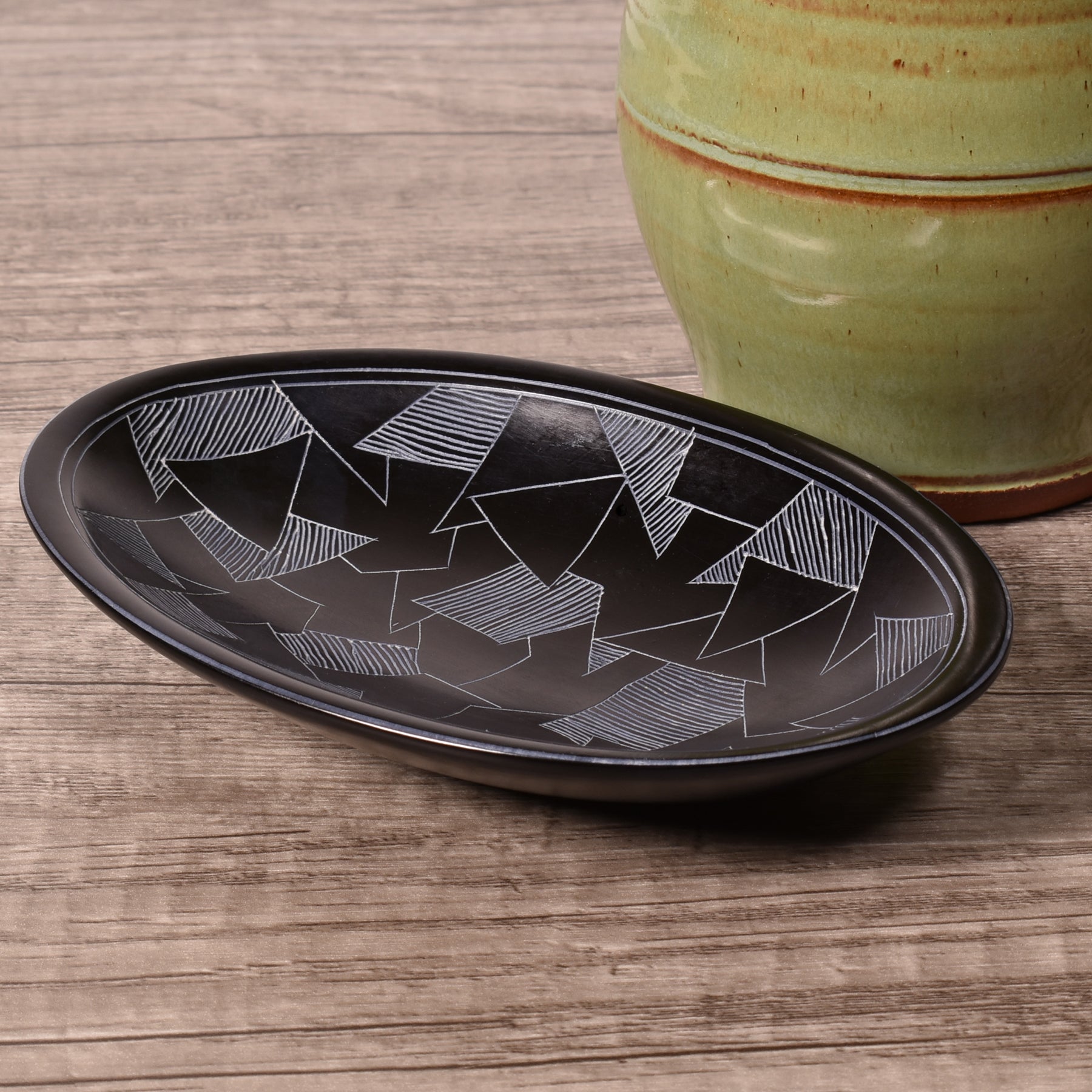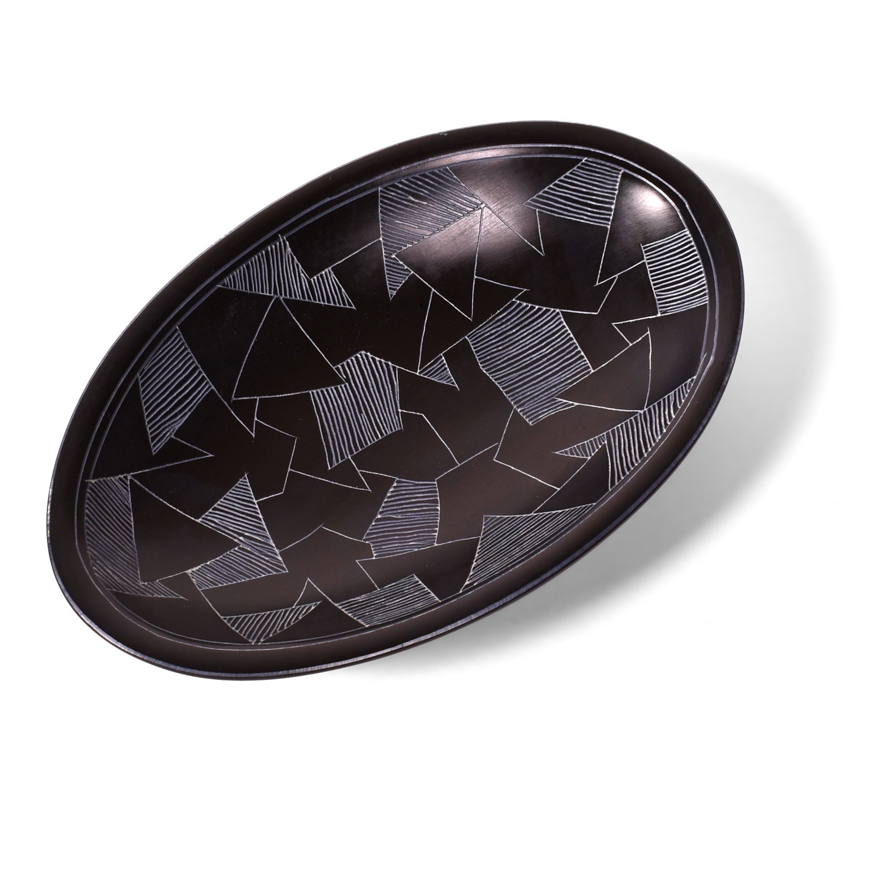 Dragonglass Pattern 5-3/4-inch Oval Soapstone Dish, Handmade in Kenya, Black