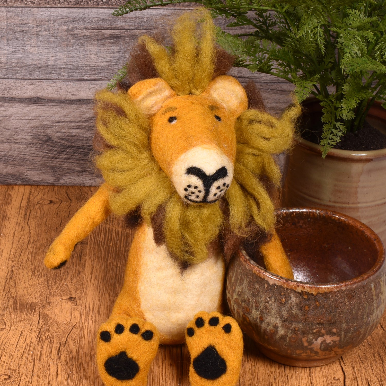 - Lion figurine, handmade in Nepal of 100% organic wool felt
