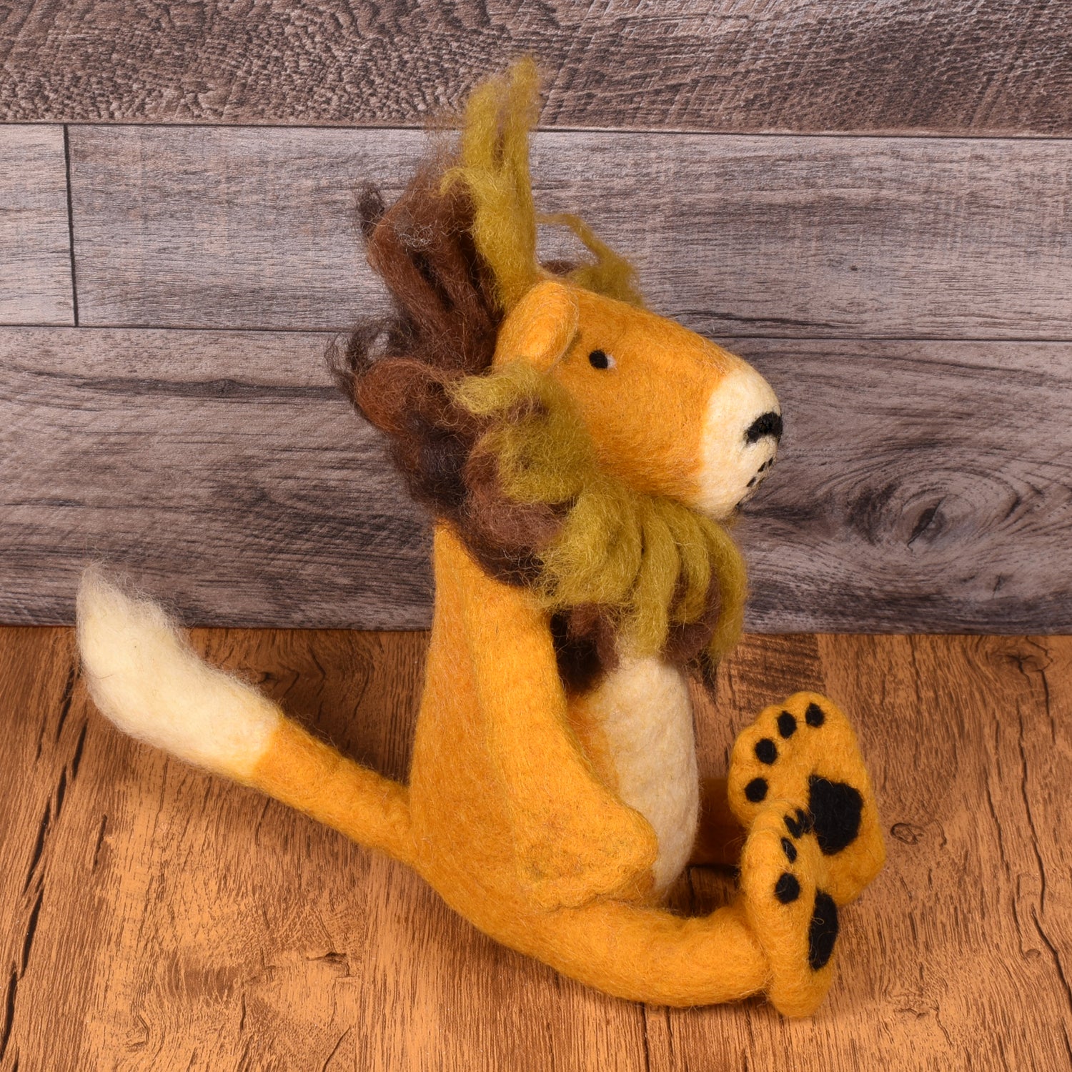 Fair Trade Organic Wool 8-inch Sitting Lion Figurine, Handmade in Nepal