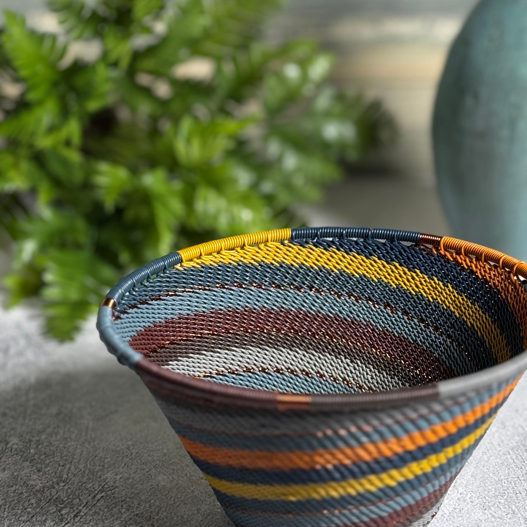 Fair Trade Zulu Handwoven Telephone Wire 5.75" Cone-Shaped Bowl, Cove Colorway