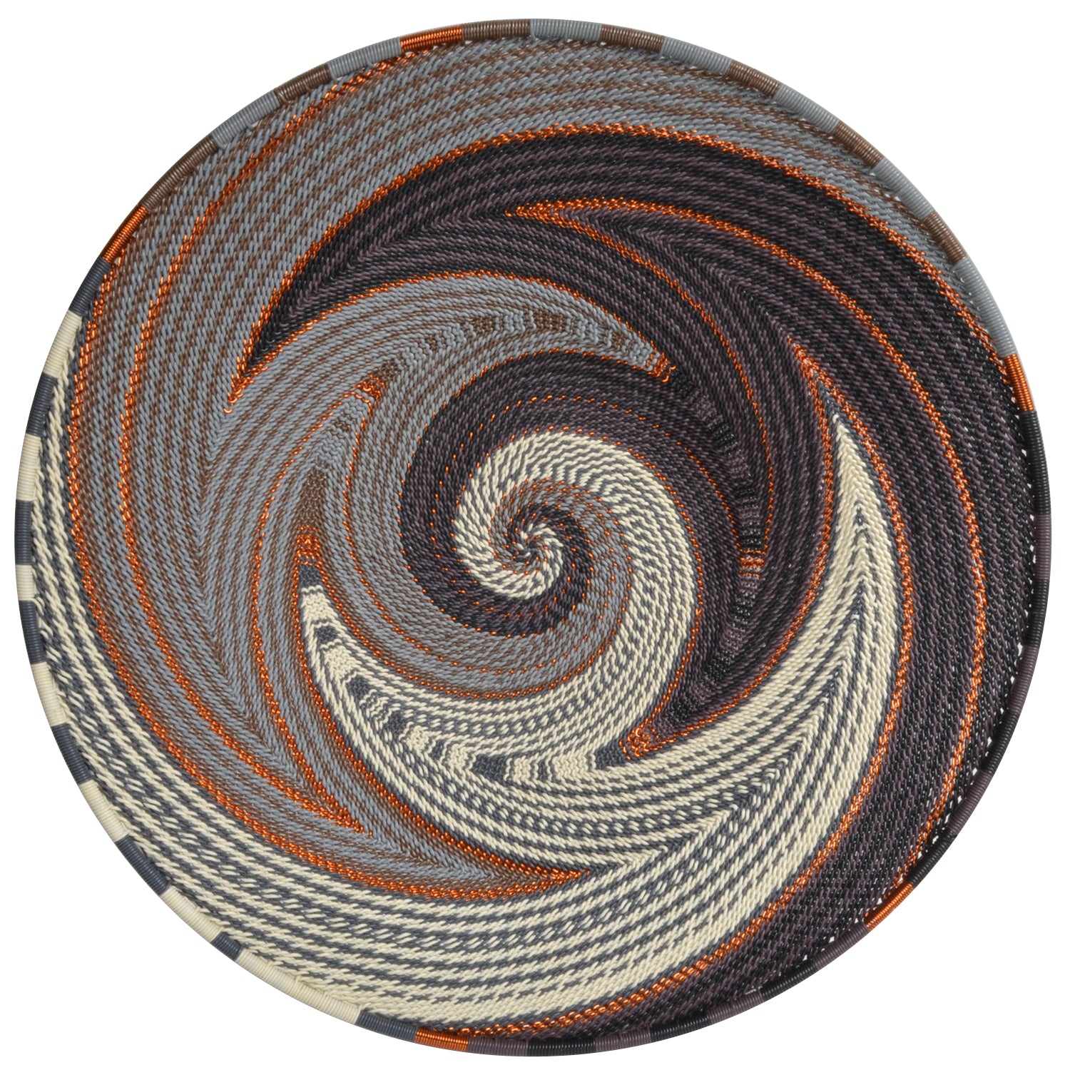 Fair Trade Zulu Telephone Wire 12-inch Platter Basket, Intricate Swirl, Gray Mist
