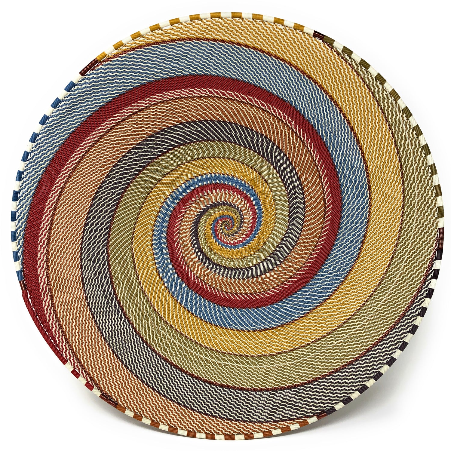 Fair Trade Zulu Telephone Wire 16-inch Platter Basket, Intricate Swirl Pattern, White Desert