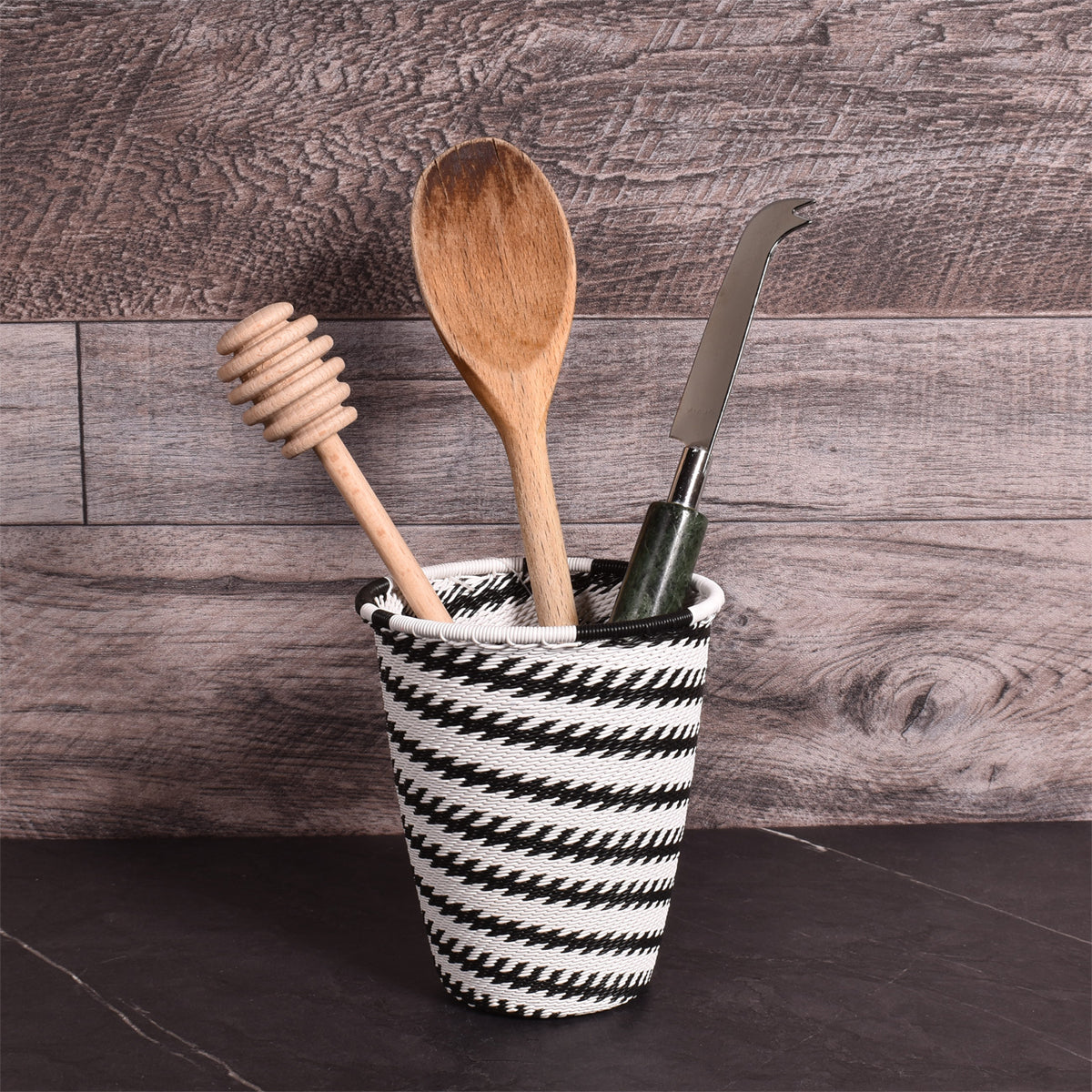 - Use as a pen/pencil cup, to hold small utensils, or as a cachepot for small plants