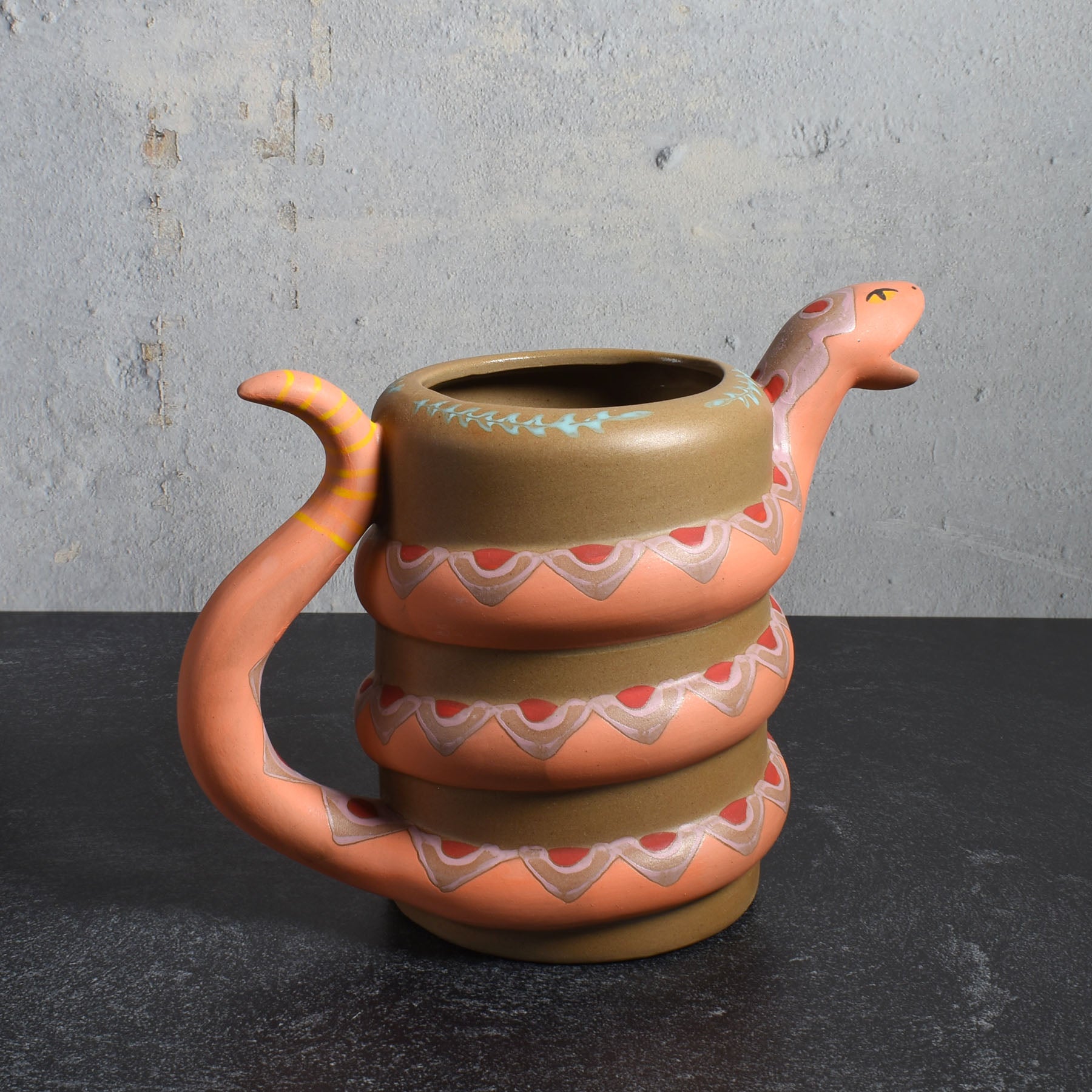 Fanciful Snake Hand-Painted Ceramic Watering Can