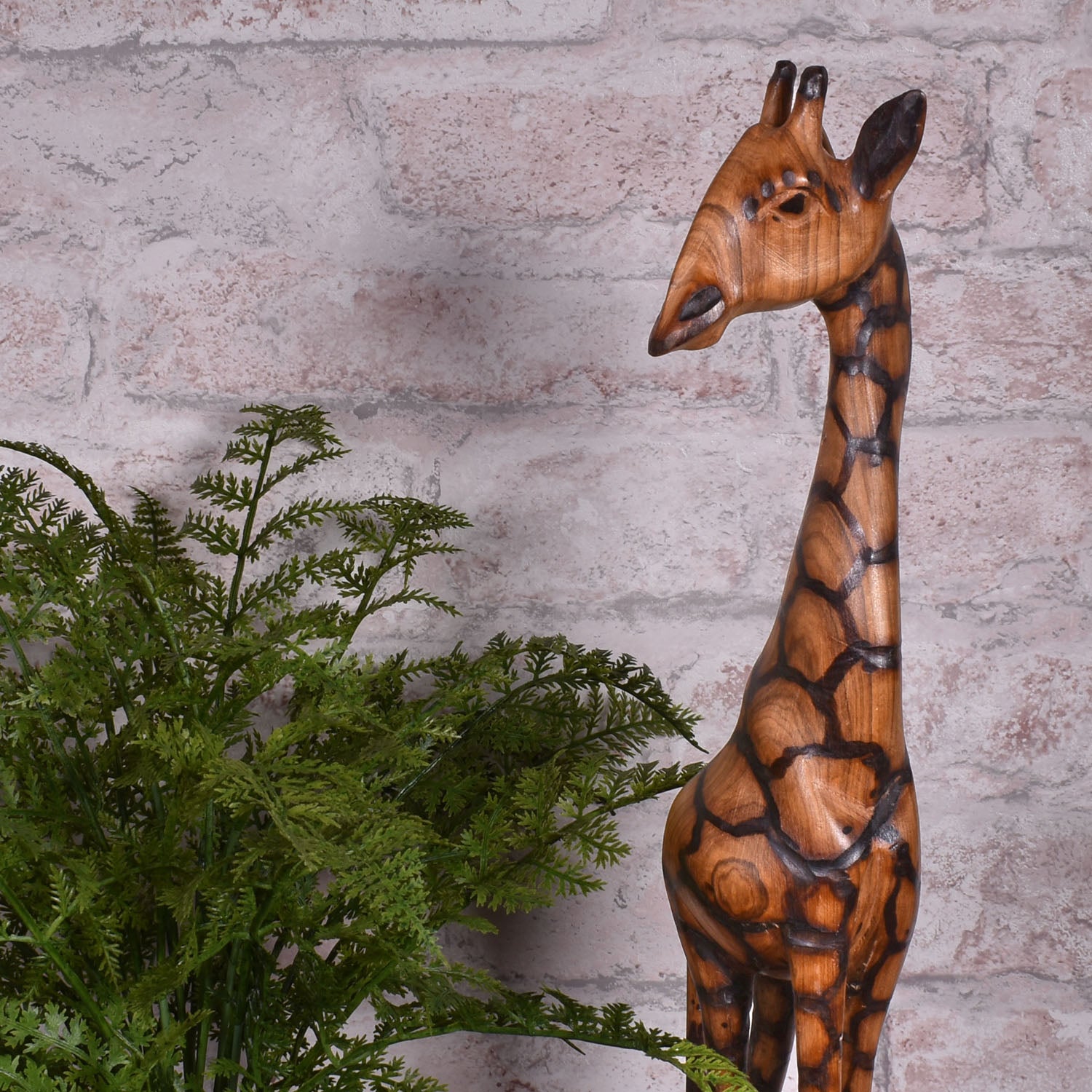 Giraffe 17" Hand Carved Olive Wood Figurine from Zimbabwe