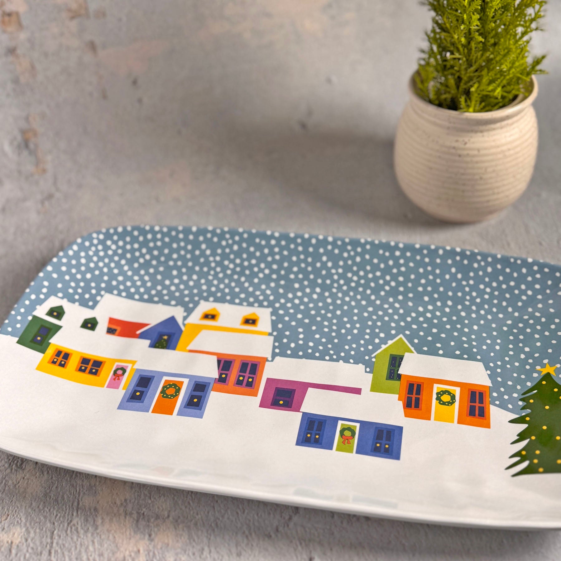 Holiday Village by Kate Nelligan 13-1/2" x 7-1/2" Melamine Appetizer Tray, Blue/Multi