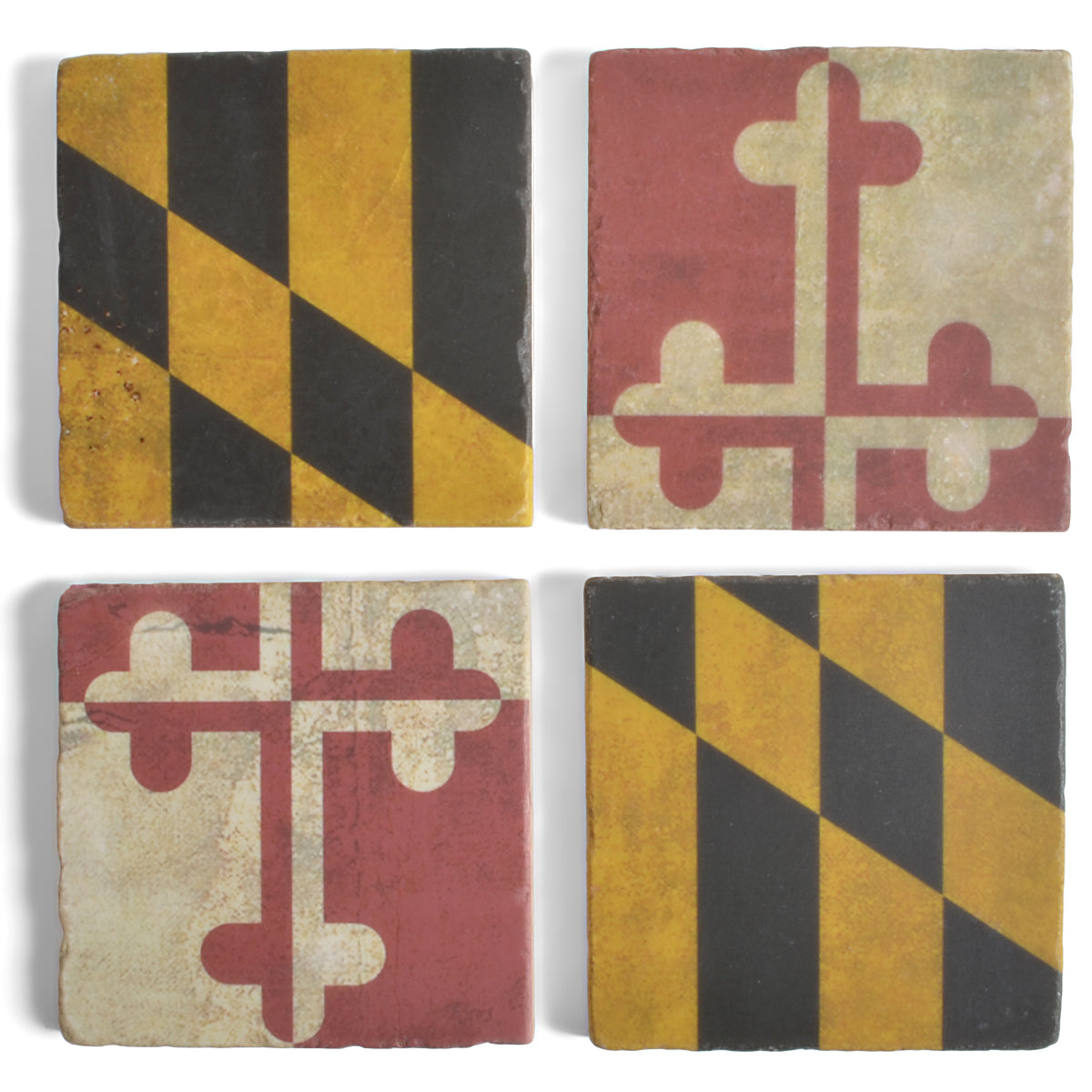Antiqued Maryland Flag Tumbled Marble Coasters, Set of 4