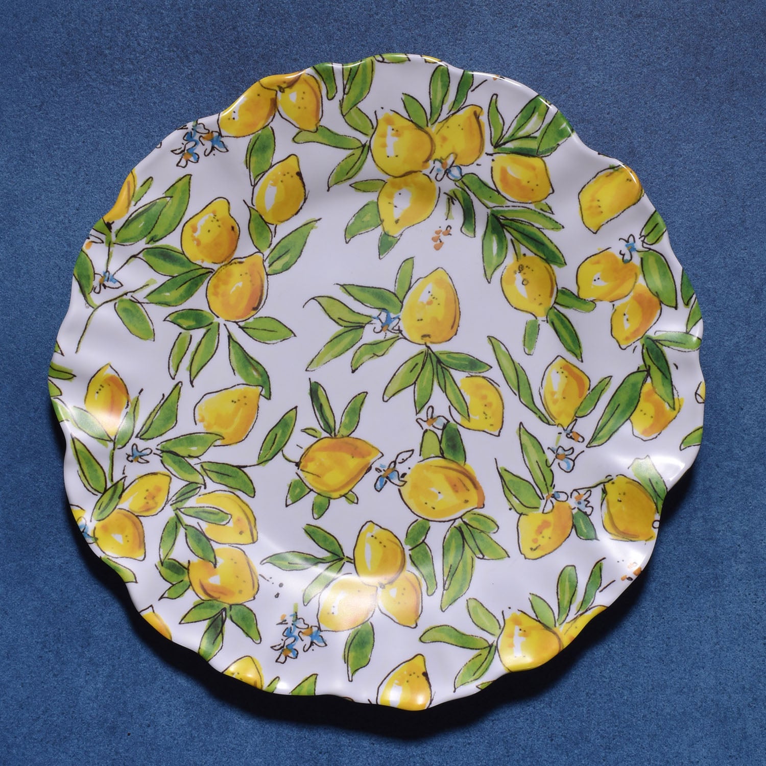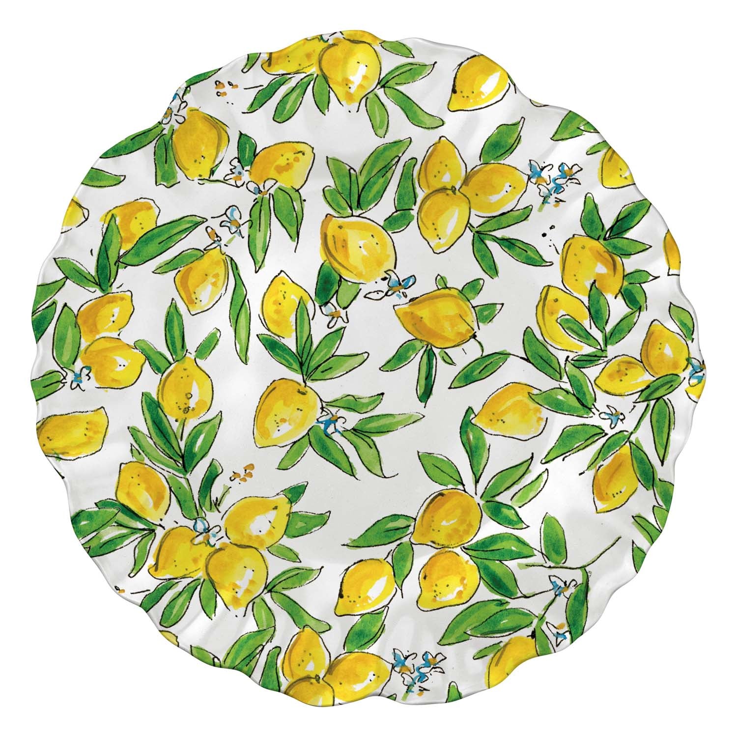 Merritt French Lemons 11-1/2" Melamine Dinner Plates with Scalloped Rim, Set of 6