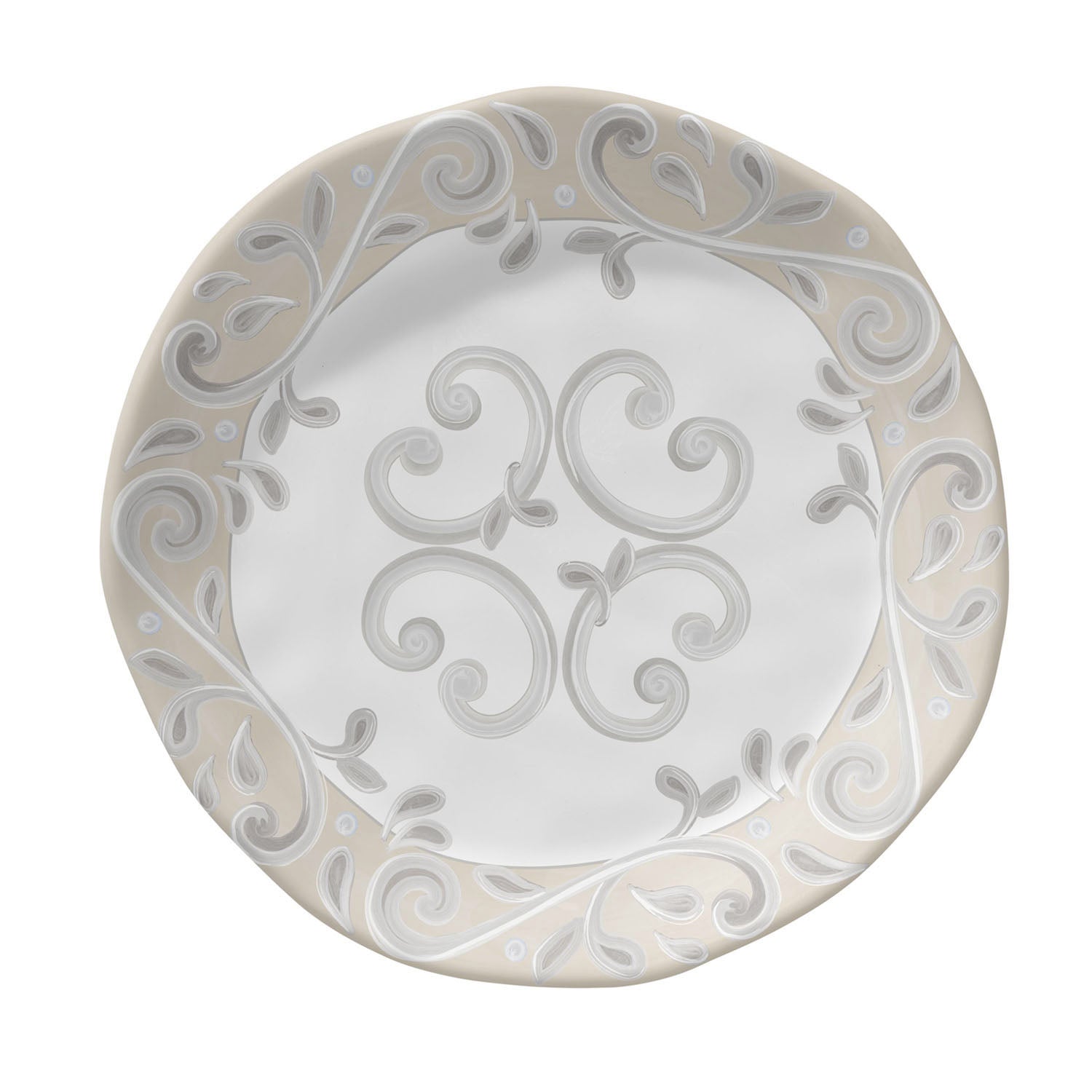 These elegant melamine salad plates will have you dreaming of an al fresco meal in Tuscany and forgetting about the clean-up. Made of sturdy luxe melamine with a smooth matte finish, they feature artwork by Erica Friedman in neutral shades of beige and ivory. Combine them with coordinated dinner plates and other serveware (available separately) for the perfect designer tablescape. For worry-free entertaining with uncompromising style, look no further than Merritt Designs.