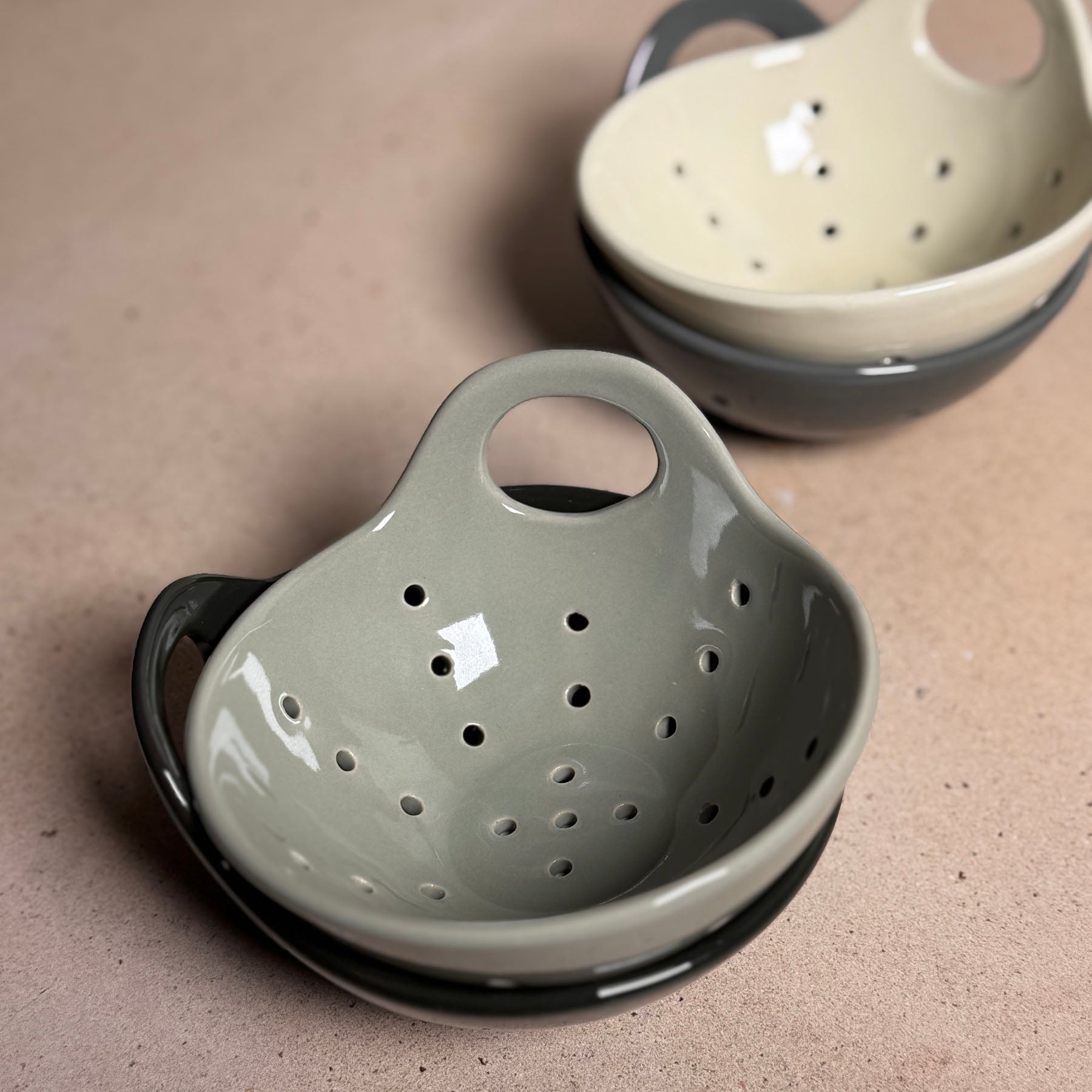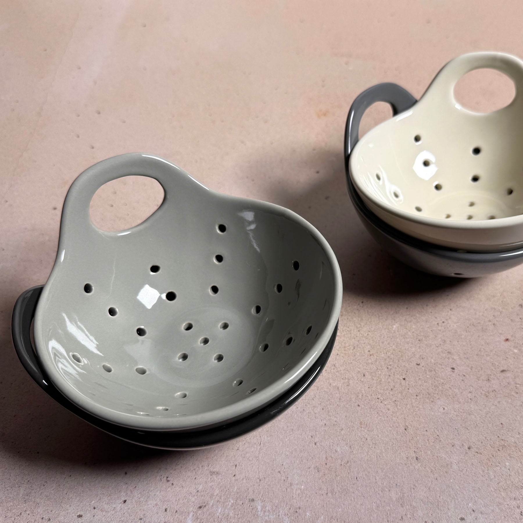 Stoneware 5" Berry Colander Bowl with Handle, Set of 4 Colors