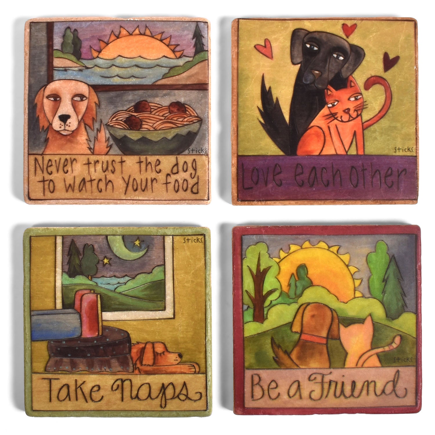 Studio Vertu Sticks Dog Advice Tumbled Marble Coasters, Set of 4