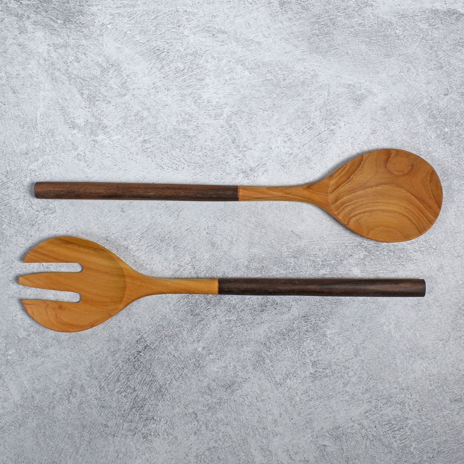 - Salad serving set, artisan-made of ecologically harvested teak wood
